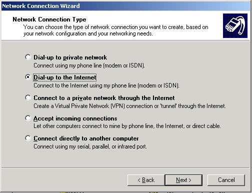 Click the 'Make New Connection' icon to launch the Network Connection Wizard |